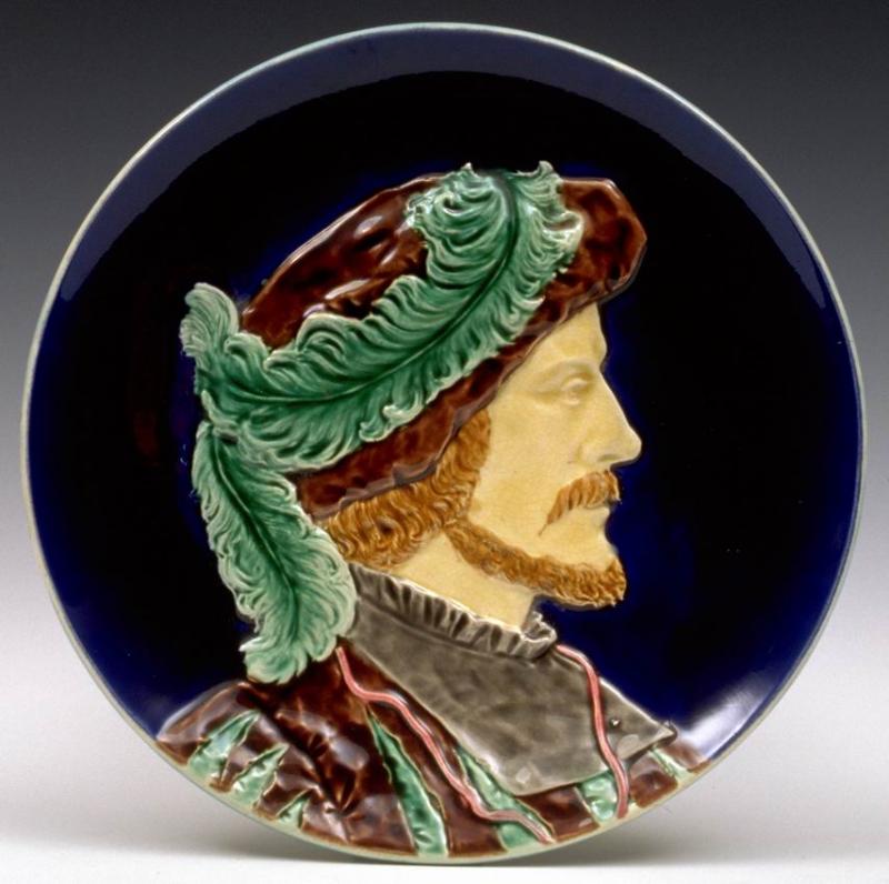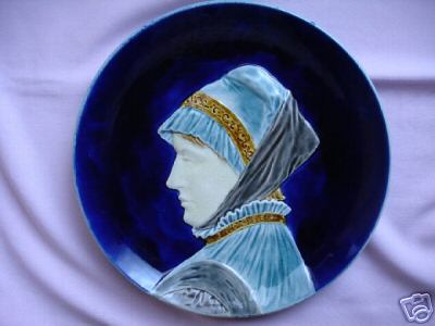 Description : décor en léger relief d un profil d un homme habillé en costume Renaissance