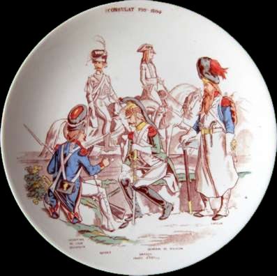 On peut noter que le Premier Empire est la seule période qui se voit attribuer deux assiettes. Ceci nous montre encore une fois le culte voué à Napoléon Premier par la direction de la faïencerie.