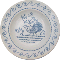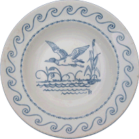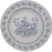 On a longtemps pensé que seuls des animaux avaient été représentés sur les décors de ce service mais la récente découverte d'un plat nous a fait réviser notre opinion et compléter les informations données dans notre premier bulletin de l'année 2008.