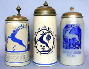 Pour la céramique, il est surtout connu pour ses chopes à bière très prisées des collectionneurs qui peuvent être également en verre ou en étain. Ces dernières pièces en céramique ont surtout été produites par Villeroy et Boch à Mettlach mais aussi par les petites faïenceries de Bavière.
