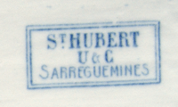 Ce service porte la marque "ST. HUBERT avec ou sans la mention U&C. Il semble avoir été produit en petit nombre à Sarreguemines entre 1905 et 1920.