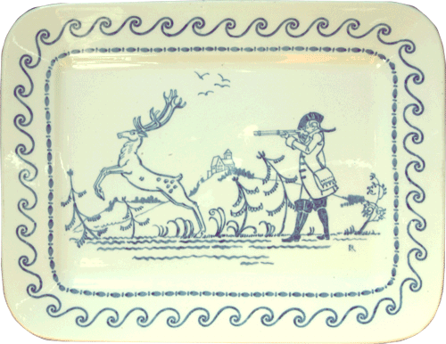 Pour ce qui concerne les faïences sarregueminoises, la seule production qui puisse actuellement être attribuée à Franz Ringer est le service objet de notre coup de cœur de ce mois : le service Saint Hubert. Extrêmement rares, ces pièces sont très recherchées surtout Outre-Rhin. Actuellement nous avons identifié 8 décors pour assiette et un décor pour plat.