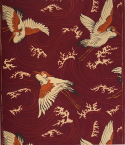 L'ouverture du Japon à l'Occident à partir de 1854 fut une révolution majeure dans le domaine des arts visuels. Fascinés, les Européens et les Américains découvrirent, par l'intermédiaire des collections rapportées du Japon et présentées lors des Expositions universelles, un art qui n'avait d'équivalent ni dans les sujets représentés, ni dans leur mise en oeuvre dans les différentes techniques des arts décoratifs. Si l’influence de la culture japonaise sur le développement des Arts and Crafts, de l'impressionisme et de l'Art nouveau a été étudiée, aucune synthèse n'a concerné encore le domaine spécifique du papier peint. Les manufactures développent dès les années 1870 une imagerie d'objets convenant aux clients avides d'exotisme, mêlant souvent des références à l’art chinois et japonais. Éventails et emblèmes héraldiques, chrysanthèmes et pins, grues et hérons, mont Fuji, pagodes et kakemonos parsèment les lés de papier peint comme ils investissent le textile et la céramique.