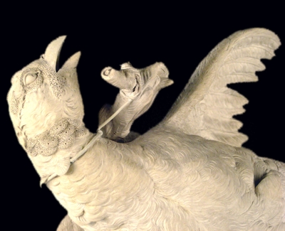 Sa marque ou plutôt ses marques de fabrique, C 00 (Utzschneider en creux) et C 01 (Sarguemines en creux) situent sa production vers 1805/1810. Ce qui en fait son intérêt est tout d'abord, la matière qui la constitue : .un grès blanc et mat très fin qui a la propriété de faire ressortir les détails du plumage, et la qualité d'exécution ensuite qui montre une grande maîtrise de la manipulation de moules complexes.