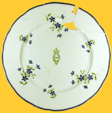 Ce "souvenir" a été rapporté de vacances avec des fragments trouvés dans une première strate de fouilles au sud de la capitale égyptienne, qui recollés reconstituent (en grande partie) une assiette plate de forme Rouen et de taille 2, décor "Barbeau".